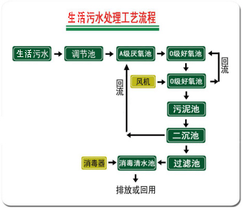 說明:污水從收集進(jìn)入調(diào)節(jié)池,調(diào)節(jié)池經(jīng)泵進(jìn)入一體化設(shè)備,首先污水進(jìn)入A級(jí)厭氧池降解污水中的大的有機(jī)物分子鏈轉(zhuǎn)化為揮發(fā)性脂肪酸等小分子發(fā)酵產(chǎn)物,后續(xù)進(jìn)入O級(jí)好氧池,反硝化菌利用從O級(jí)好氧池中混合液中帶來的大量硝酸鹽進(jìn)行反硝化反應(yīng),達(dá)到去碳和脫氮的目的。隨后進(jìn)入O級(jí)好氧池,O級(jí)好氧池聚磷菌在曝氣充氧條件下分解PHA并釋放能量。同時(shí)硝化菌在好氧的環(huán)境下將完成氨化和硝化的作用,將水中的氨氮轉(zhuǎn)為NO2和NO3。大量的回流液將把產(chǎn)生的NOx帶入O級(jí)好氧池進(jìn)行反硝化脫氮。污水進(jìn)入二沉池上清液進(jìn)入消毒清水池,二沉池濃縮污泥回流至O級(jí)好氧池繼續(xù)參與釋放并保持系統(tǒng)活性污泥濃度,另一部分則攜帶超量吸收的磷以剩余污泥的形式定期排出系統(tǒng)。污水進(jìn)入消毒池,通過消毒投加一體機(jī)進(jìn)行消毒將污水中的大腸桿菌、螺旋桿菌等消除,出水排放或回用沖廁。